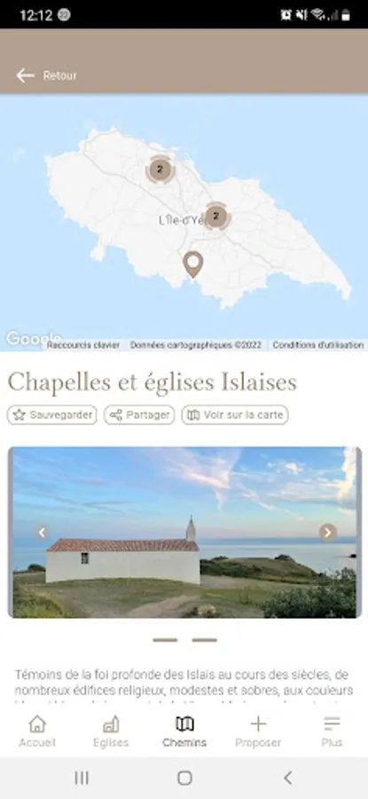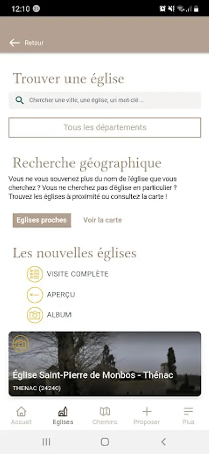 BellesEglises is a collaborative and free application that allows you to discover and visit beautiful churches in France. You like a church, a chapel, an abbey, a cathedral… propose it, send a photo, a note, a link… it will appear in the BellesEglises application. On social networks, more than 60,000 fans support this BellesEglises project. More than 1,000 churches have already been proposed, they are gradually integrated into the application.