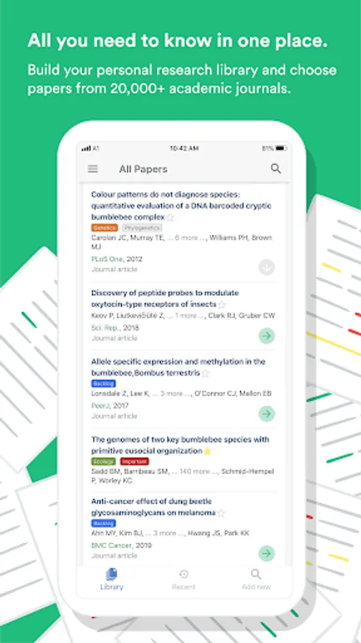 - Add new papers to your collection with one tap and the PDF will be downloaded automatically.