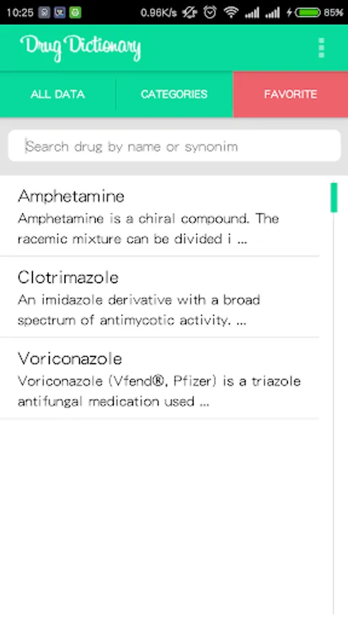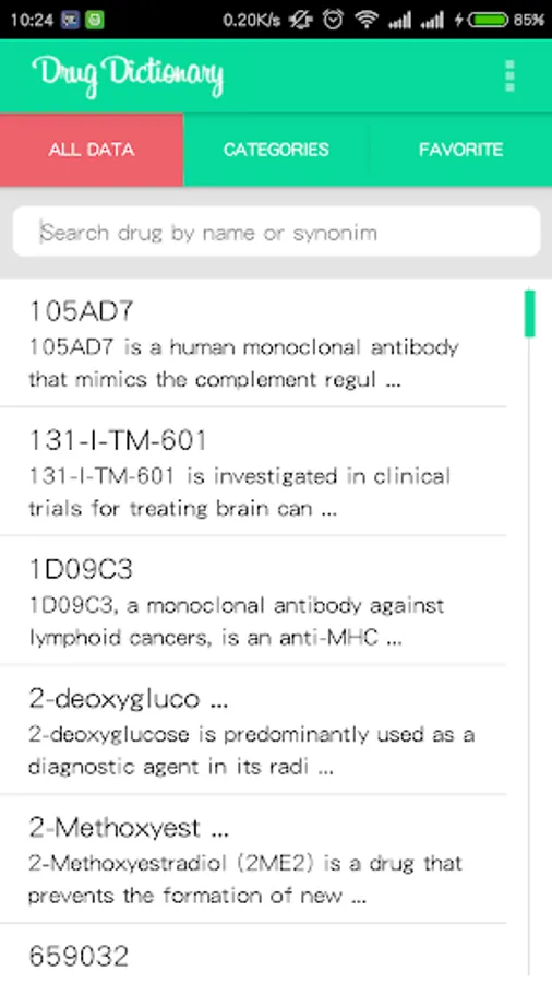 Drug Dictionary is best offline mobile drug application with more than 2000++ entries of drugs data. Get drug's information including the name, description, indication, synonims, pharmacology, toxicity, brands, mechanism of action, affected organism, drug interaction, food interaction and drug category. You also can add your favorited drugs to favorite list.