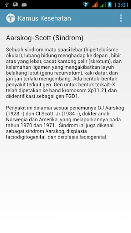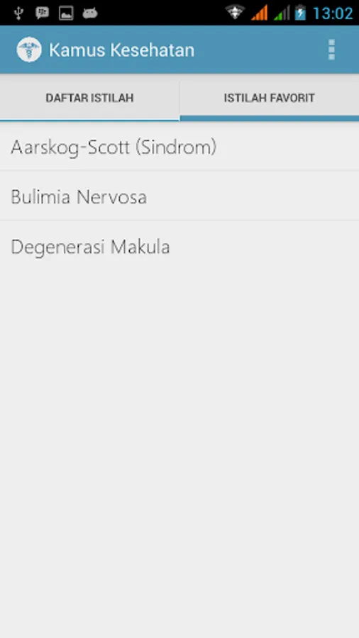 Kamus Kesehatan merupakan aplikasi mobile yang berisi kumpulan istilah dalam dunia Kesehatan yang dilengkapi dengan penjelasannya. Aplikasi ini diharapkan dapat membantu pelajar/ahli kesehatan untuk memudahkan dalam memahami istilah-istilah dalam dunia Kesehatan.