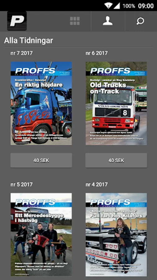 Proffs är tidningen för alla som sysslar med godstransporter på väg. Vi bevakar allt som händer i din bransch. Nyheter, rättsfall och underhållande featurereportage. Allt förpackat i ett format som passar dig!