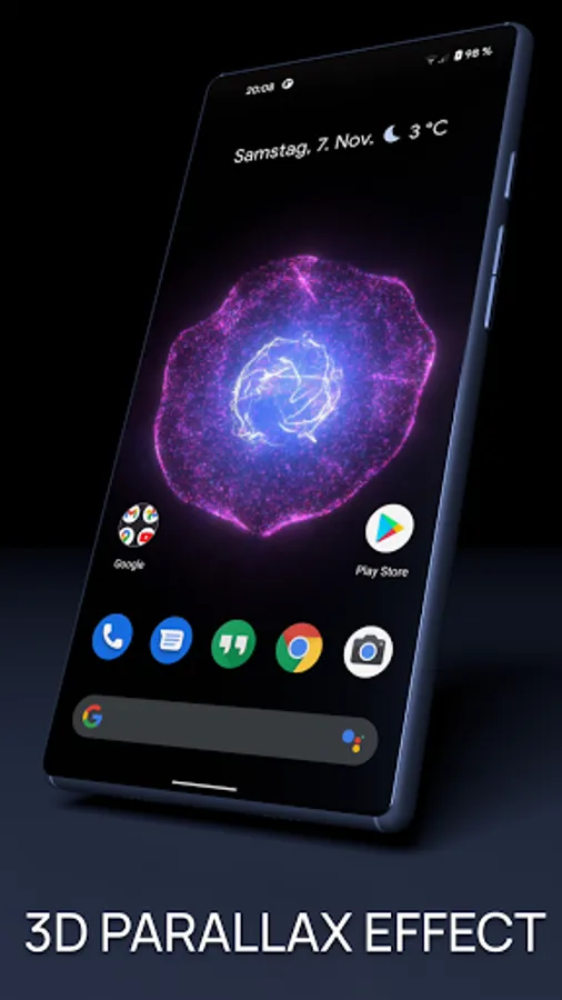 Orb 3D is not a simple photo background or video background live wallpaper. It is not limited to a specific resolution (i.e. Full-HD or 4K) instead it uses the devices default screen resolution for rendering this in realtime.
