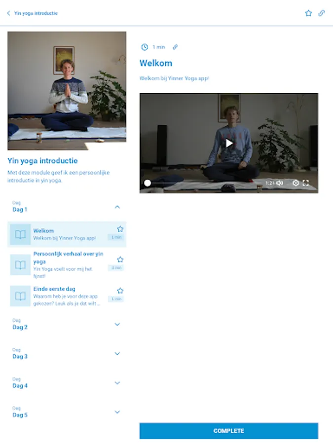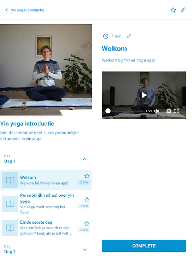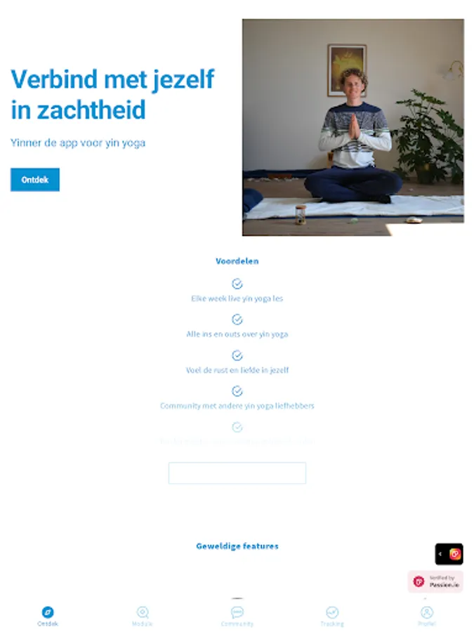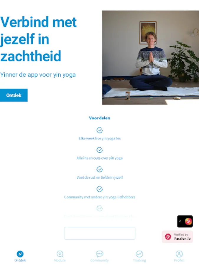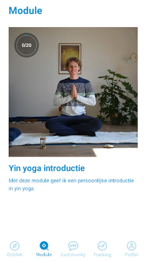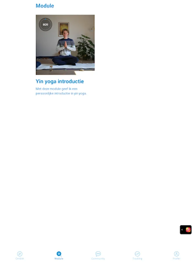 Je mag veertien dagen gratis in de app rondkijken. Ik geef elke week een live yin yoga les, ik maak content waar behoefte aan is. In de app is een community optie om met elkaar te verbinden en een tracking optie om je voortgang bij te houden!
