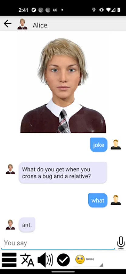 Chat with your new friend Alice. She is an AI chat bot that loves to chat about any subject.