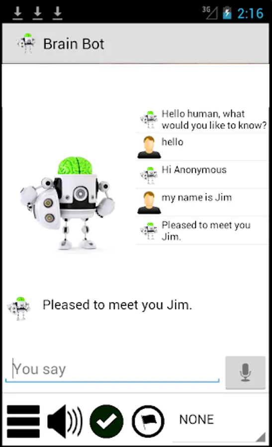 The Brain Bot app is open source, and hosted on BOT libre. BOT libre lets anyone make their own chat bot, Twitter bot, email bot, virtual agent, virtual assistant with free hosting.