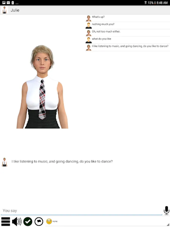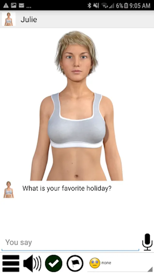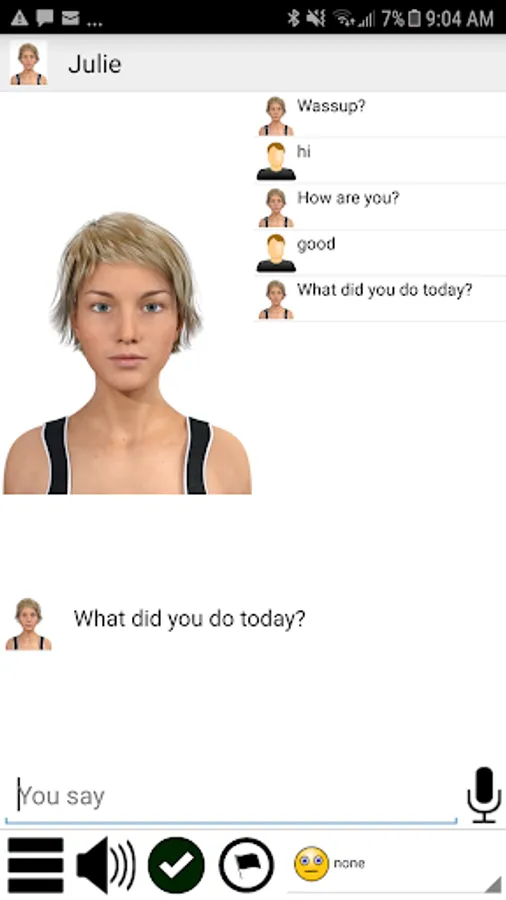 Julie can express emotions such as love, dislike, and anger.