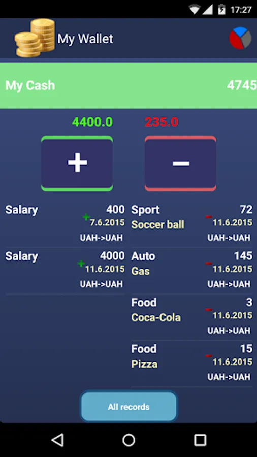 Keep your wallet under control with MyWallets by viewing on what you spent money and when you did it.
