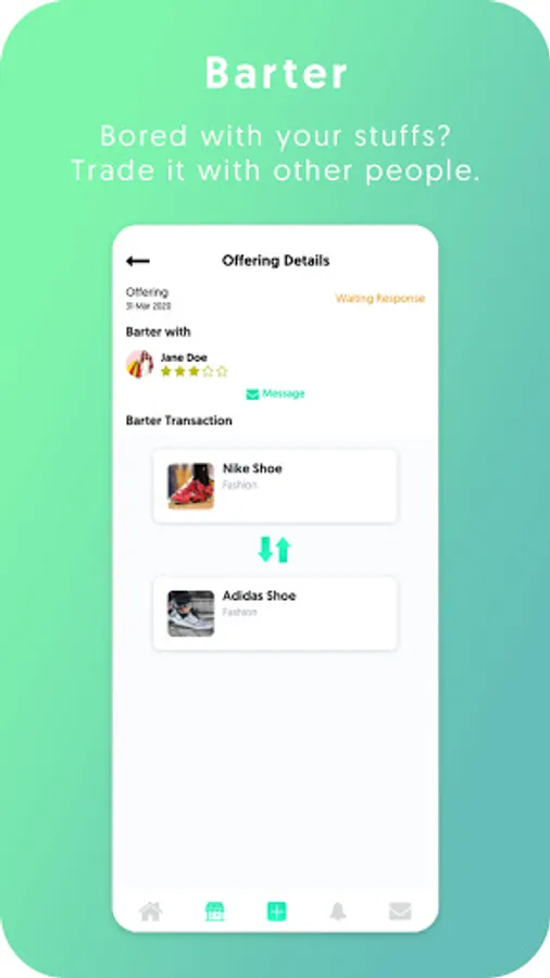 • Tidak ada lagi yang namanya pasif user. Kamu dapat menemukan “Match” barter kamu dalam bertransaksi di dalam app ini.