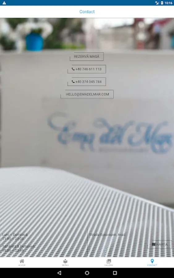 "Ema del Mar is a small and cozy restaurant with a terrace in summer, but especially known for the exceptional quality of food and service. Our target is to offer our guests an unforgettable experience "- Nicolae Chiş, CEO.