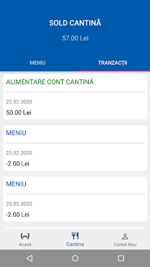 The application allows employees to view and monitor both the menus purchased in the canteen, as well as the money supplies of the card, thus offering a complete control of the expenses.