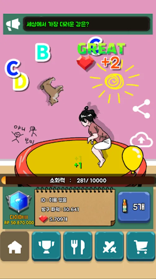 If you touch the balloon that comes up every few seconds, your digestive power will increase.