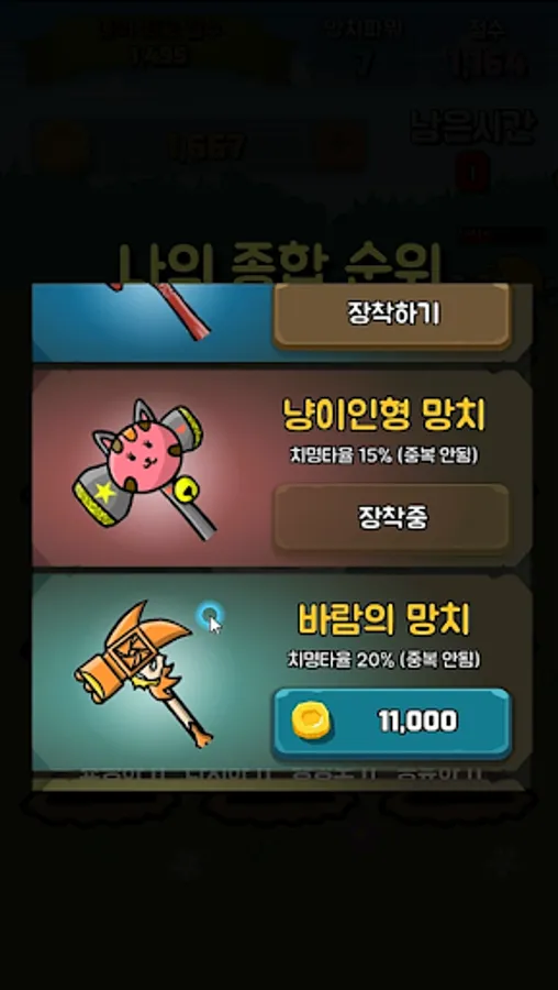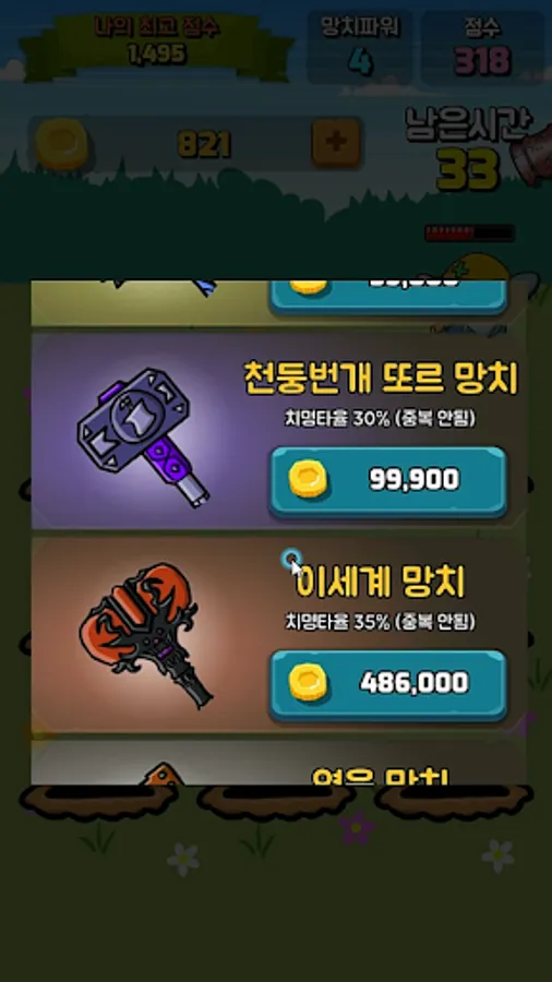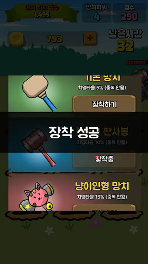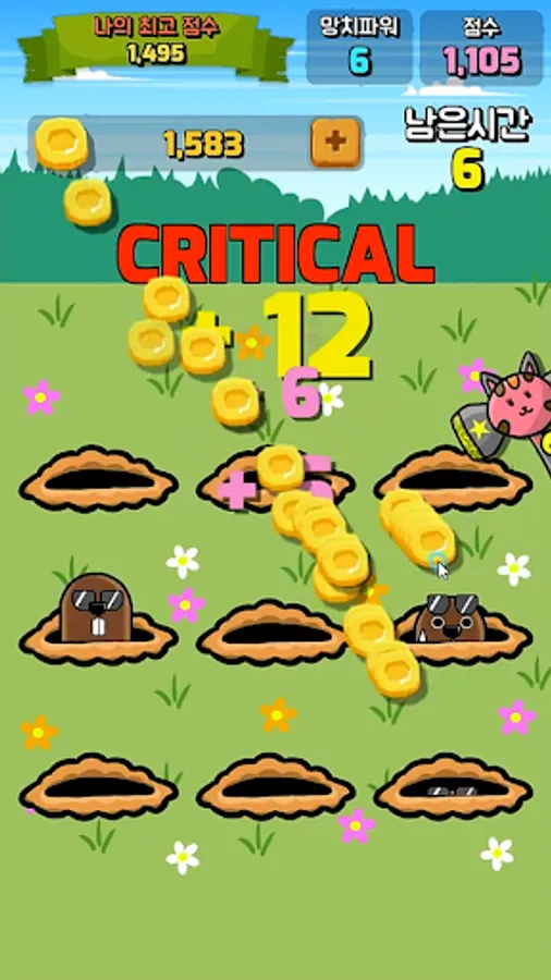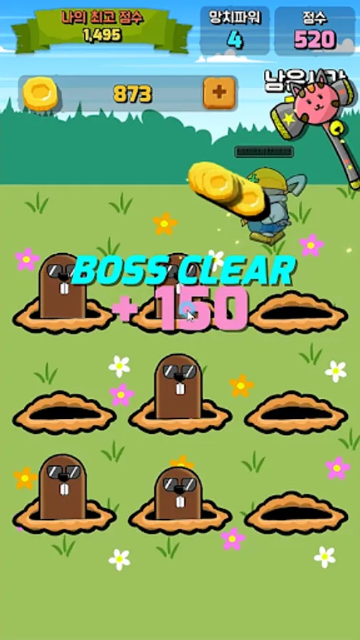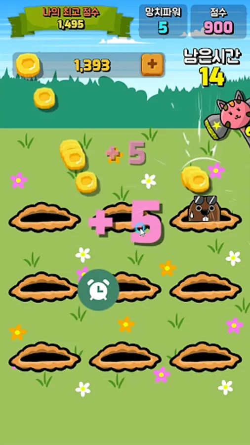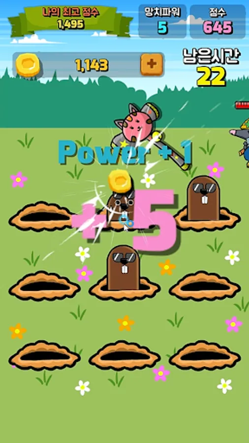 The higher the power of the hammer, the higher the score per hit when hitting a mole.