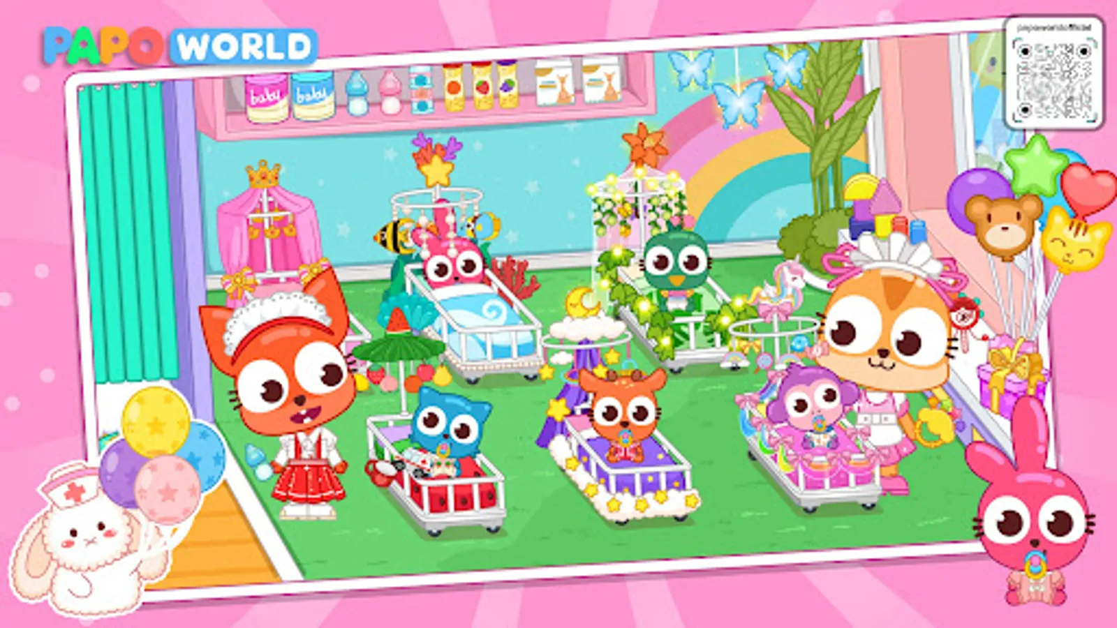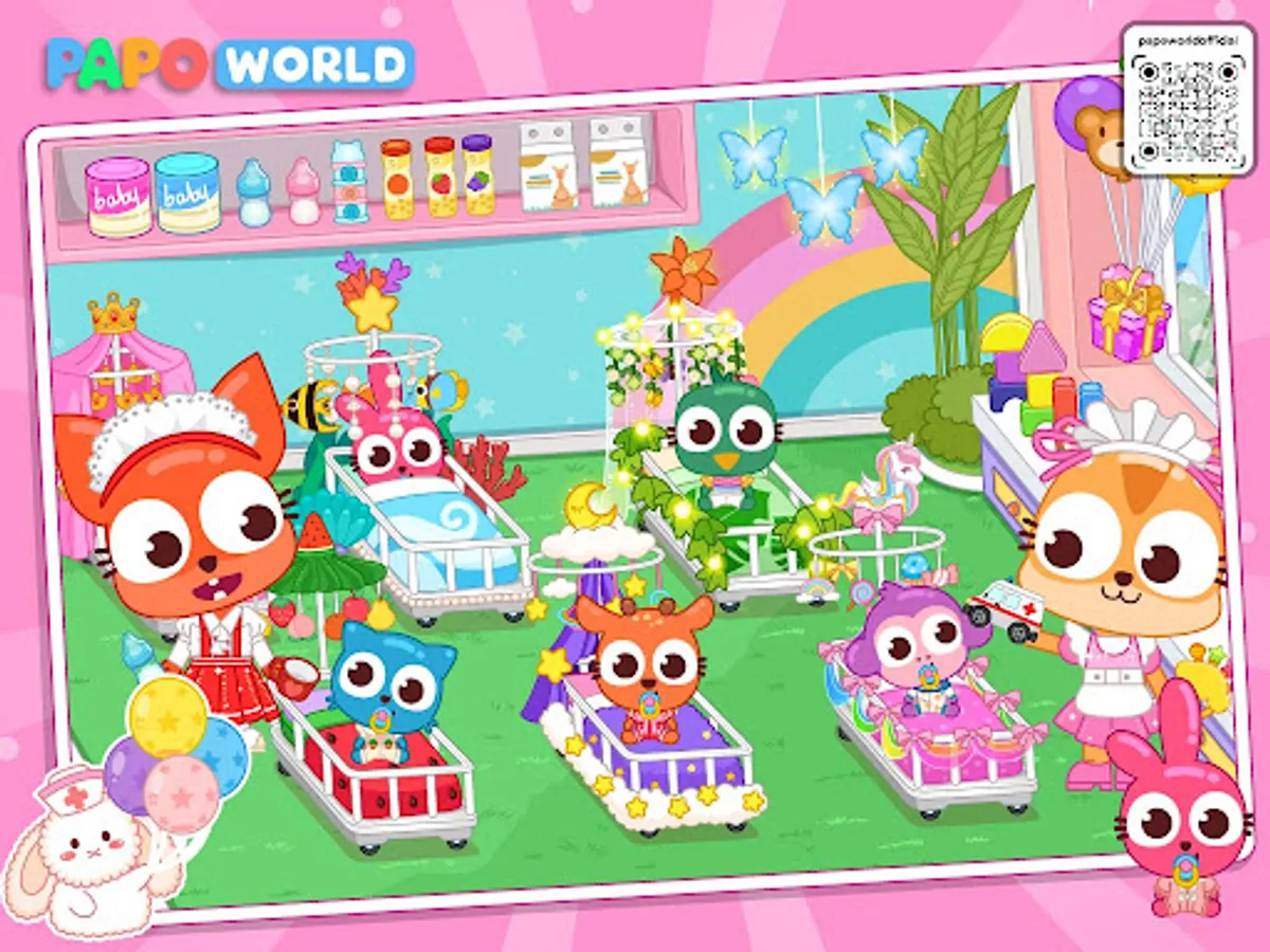 Welcome to Papo Town: Baby Nursery! This is a newly upgraded kindergarten where everyone can freely create, explore, and learn with joy. You could play house and pretend to be any role you like: a teacher, a nurse or a cook and take care of our adorable babies, just like in a real kindergarten! Play and interact with cute little friends without any rules, fostering imagination and enhancing cognitive abilities in an interactive environment. Experience the joyful activities of a kindergarten and look forward to the real preschool life!