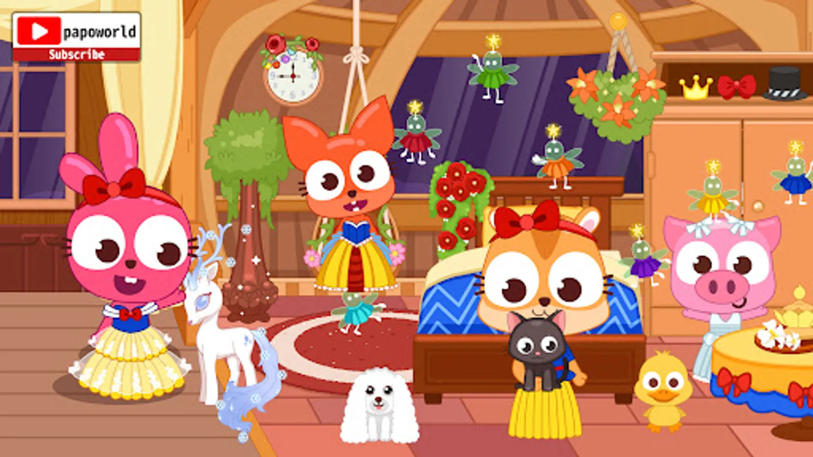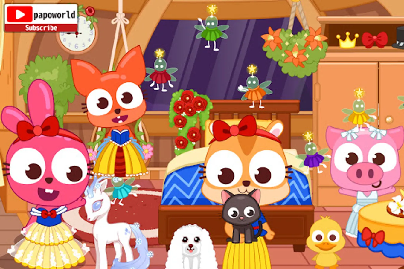 There is a mysterious fairytale world in Papo Town where all the popular fairytale characters live there! Join Purple Pink the Bunny and Steve the Lion to explore in the world of your favorite fairytales!