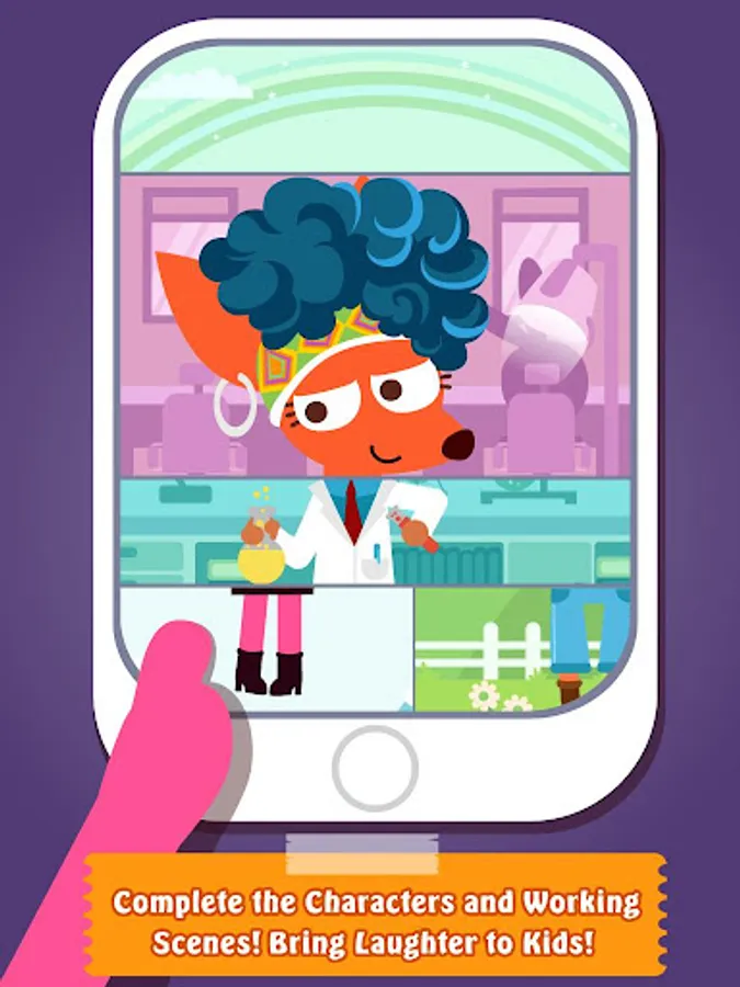 We selected 20 widely known occupations like teacher, doctor, magician, police, firefighter, astronaut, superhero, artist and dancer, ect. Kids could find out desired jobs through mix and match, observe the features in outfits, tools and other items related to the occupation to get a better understanding of a profession.