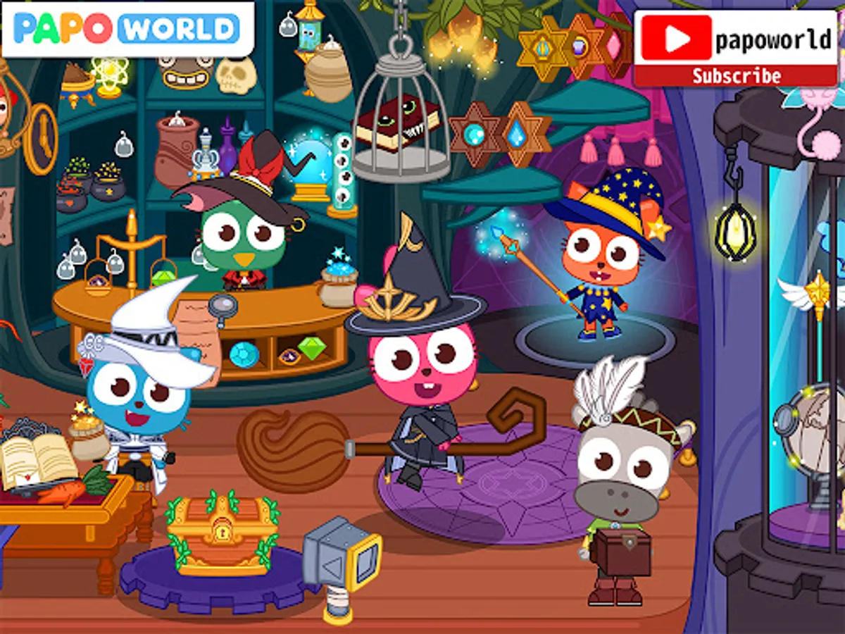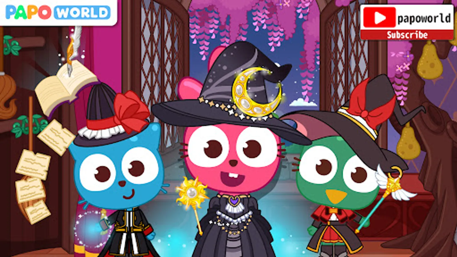 At the same time, play with other Papo World friends and create your own magic world story! Drag the characters into the scenes, drag food and clothes to them, and make up fun stories for them! There are many interesting and amazing magical items in the magic store. Play with these items and see what will happen. Travel on the train and go to different magical platforms like a platform built by ice, a platform built in forest or a platform built by sweets. Don’t forget to visit the magic school where you could see more magic, experience the life of a wizardry student and practice some magic spells. No rules, more fun!