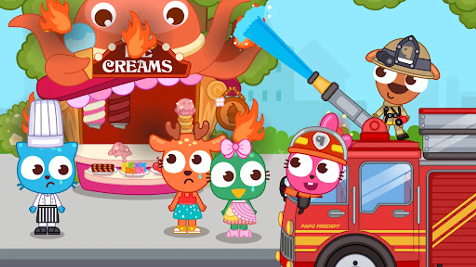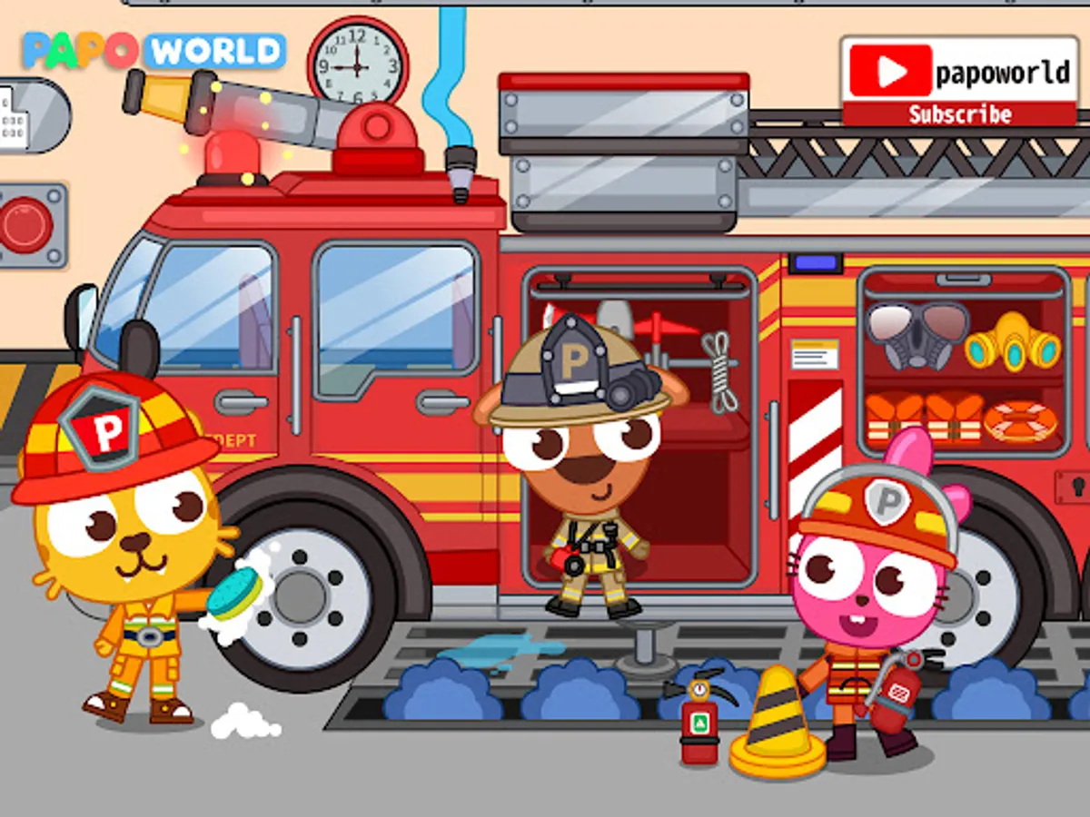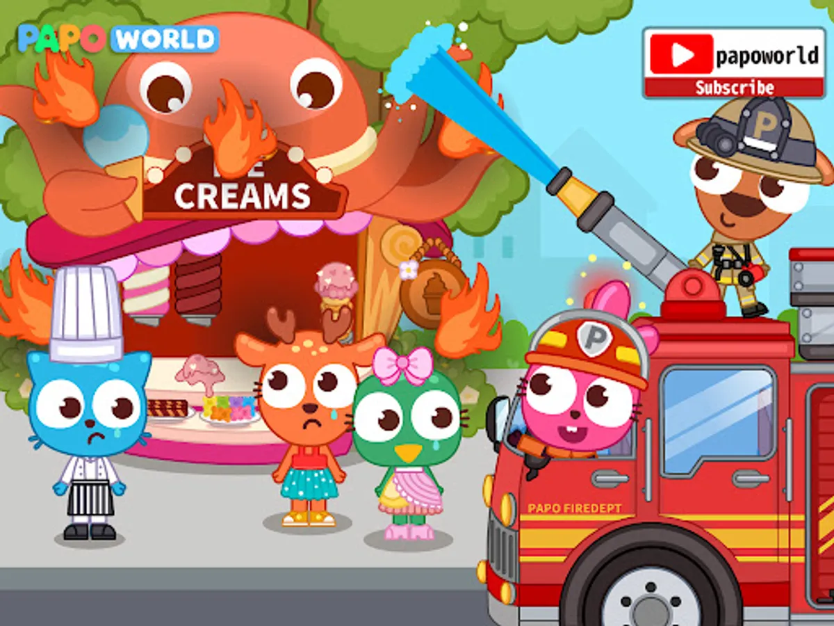 Papo Town Fire Department is recruiting! Who wants to be a brave firefighter hero? Together with Purple Pink and other Papo friends, let’s save the town residents trapped in the fire accidents, and protect their lives and property from fire!