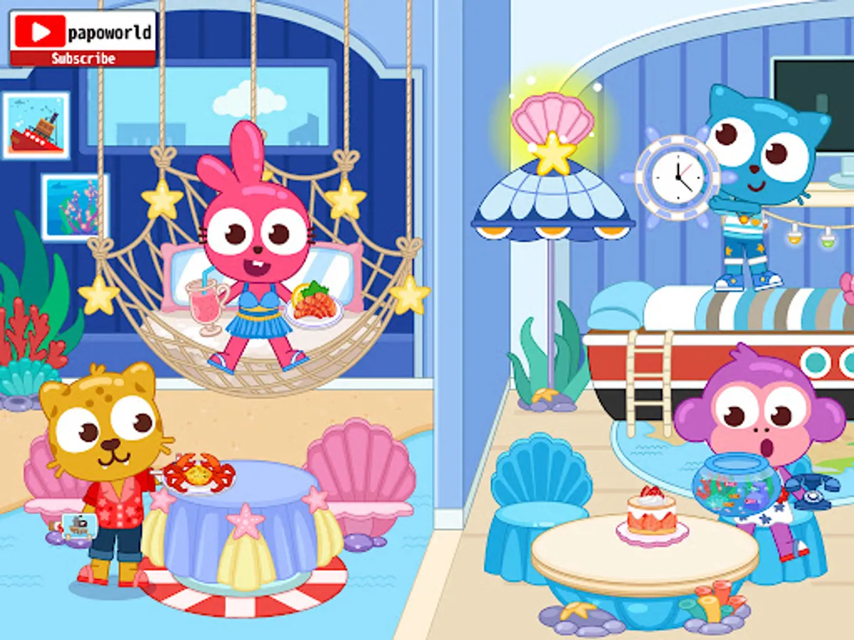 Papo Town Skyscraper is a free-to-decorate play house game. You could simulate the job of a real life interior designer and decorate the rooms with fantastic furniture and accessories. There are 6 different room styles: magical room, kawaii room, marine room, tech room, royal room and modern room. With a wide range of more than 400 furniture choices, you could decorate any room as you like!