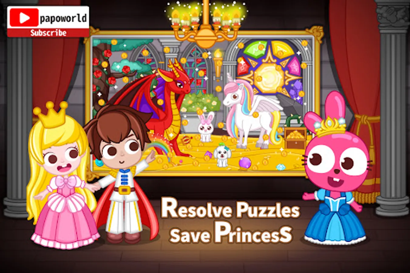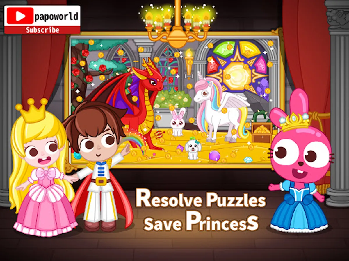 In Papo Town, Purple Pink the Bunny is inviting all boys and girls to the mystery castle, not only for a royal tour, but also to resolve the puzzles and free the prince and the princess! There are mysterious information and symbols in the castle. Can you put the clues together, work out the puzzles and rescue everyone in the castle?