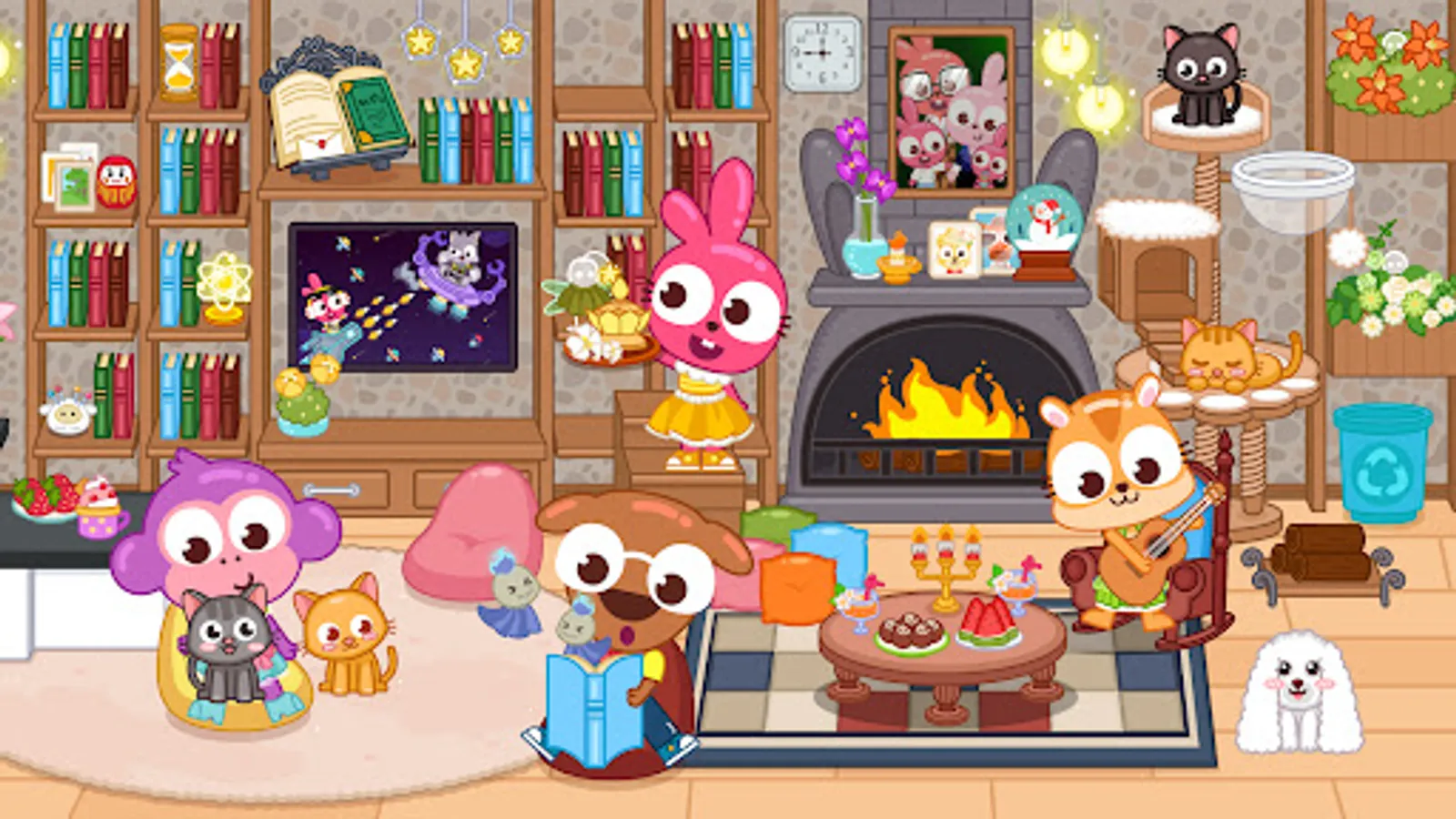 There are so many rooms for your discovery! Living room, dining room, bedroom, garden, swimming pool, a garage and a party room! In each room, there are many props to be play with, and everything simulates the real life. Make a delicious dinner in the dining room, and you will find all the food ingredients you need! Or host a yard sale in your garden, and it could also be an outdoor party! Don’t forget those little furry cuties in your living room! They need your care and feeding!