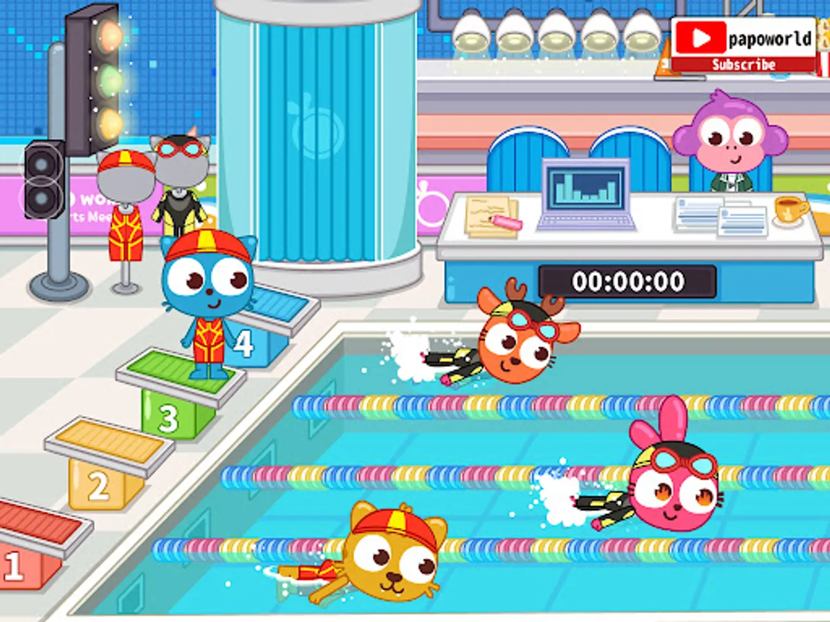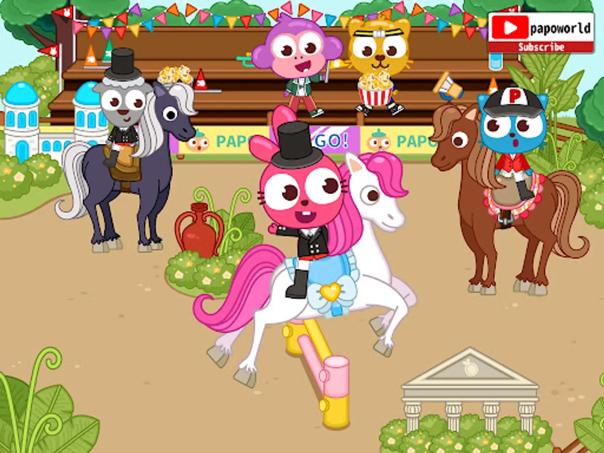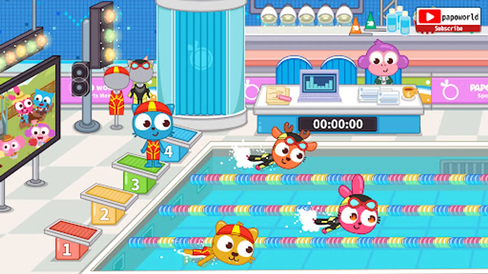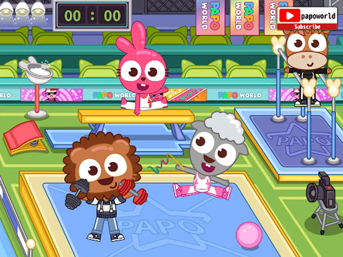 Take a tour at the sports meet stadium for all the events such as track and field, swimming, gymnastics, horse racing and different ball games like football, basketball, baseball and tennis. Practice at the venues and get ready for the real challenge! When you are ready, enter the sports challenge games for a real competition. Play against the Papo Town friends and aim for the gold medal!