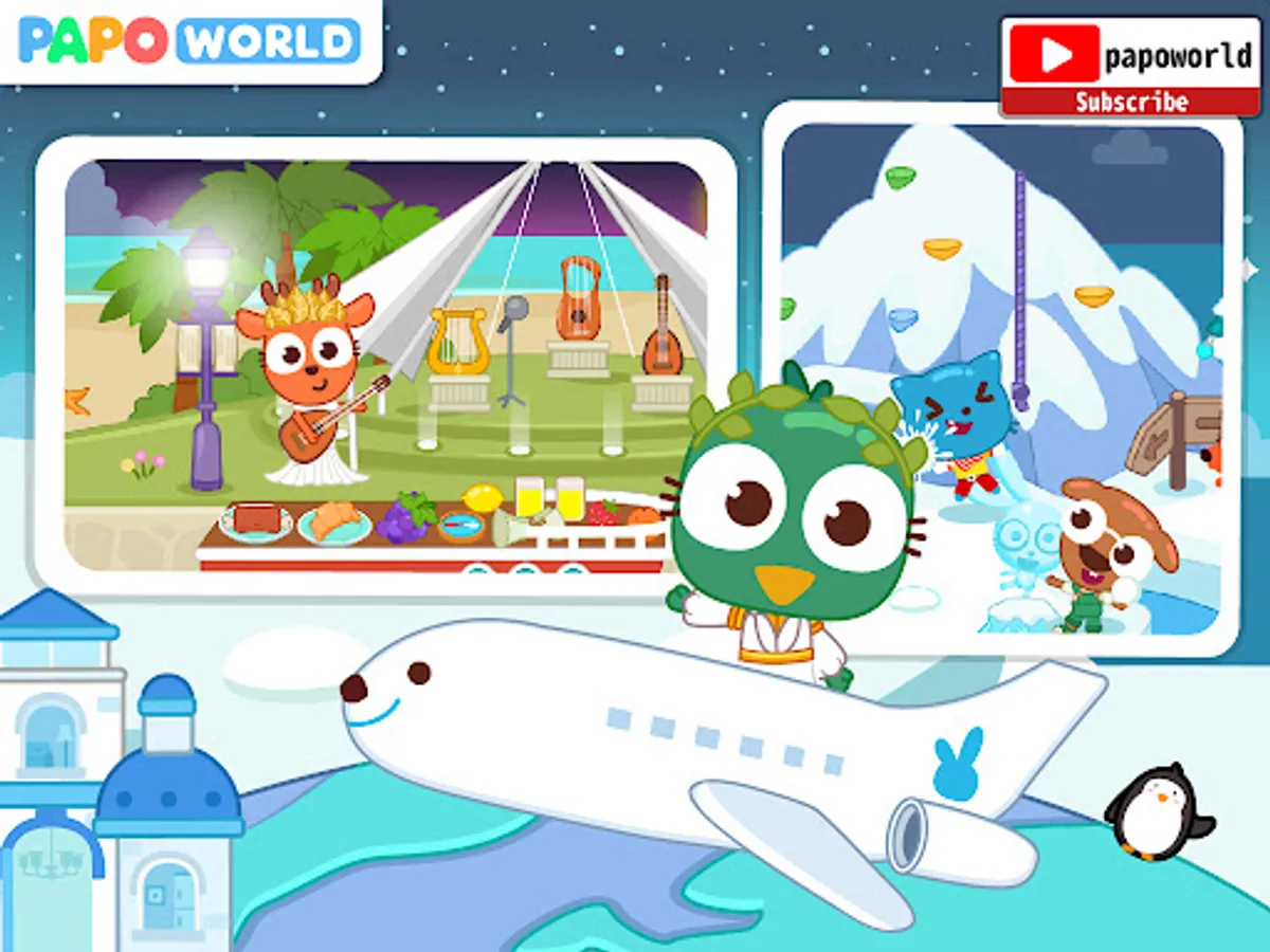 Papo Town: Travel stimulates a real trip, and you could experience different sceneries, cultures and customs of different countries, explore the mysteries and surprises of nature! The game includes five scenes including the airport, ancient Egypt, Aegean seaside, the south pole and the Amazon rain forest! Enjoy the fun of discovery!