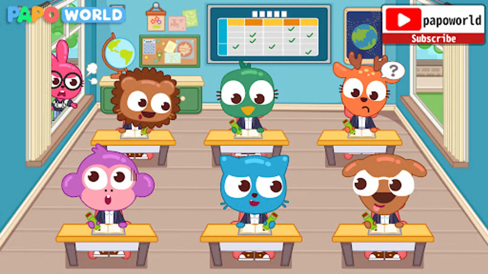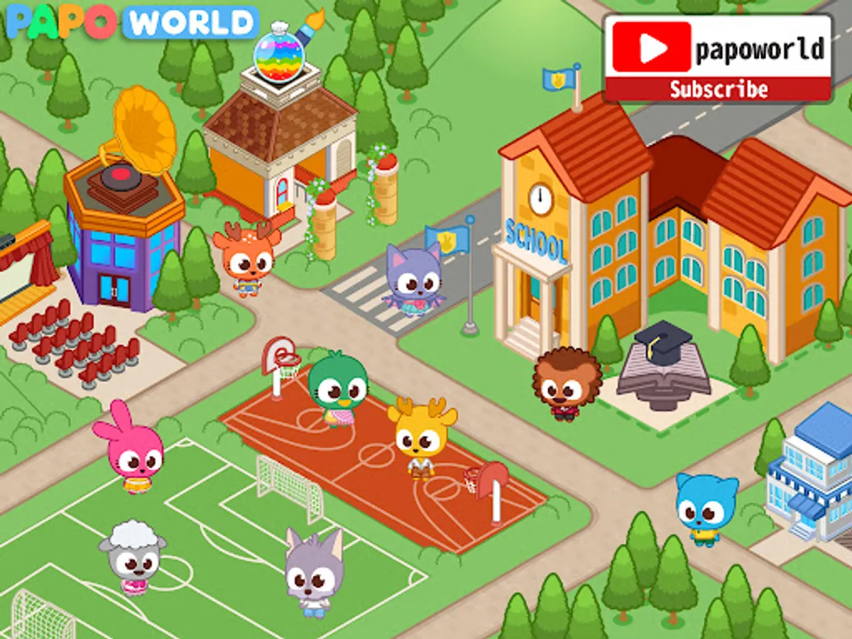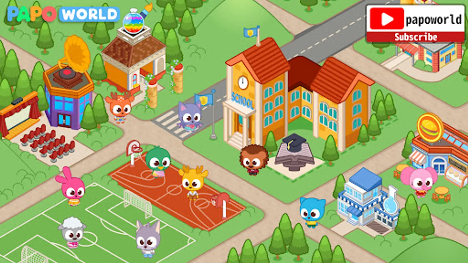 Papo Town School Life simulates the real school scenes and activities! There are so many props you could play and interact with, like the slides, swings and ball games in playground, the test tubes and plants in lab room, the music instruments like drum, piano, violin and guitar in the music room and lots more items to use! Each room has a fun mini game like pizza maker and music test, challenge yourself for higher score!