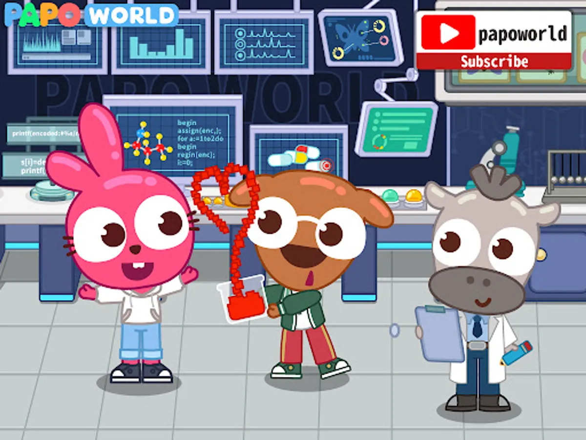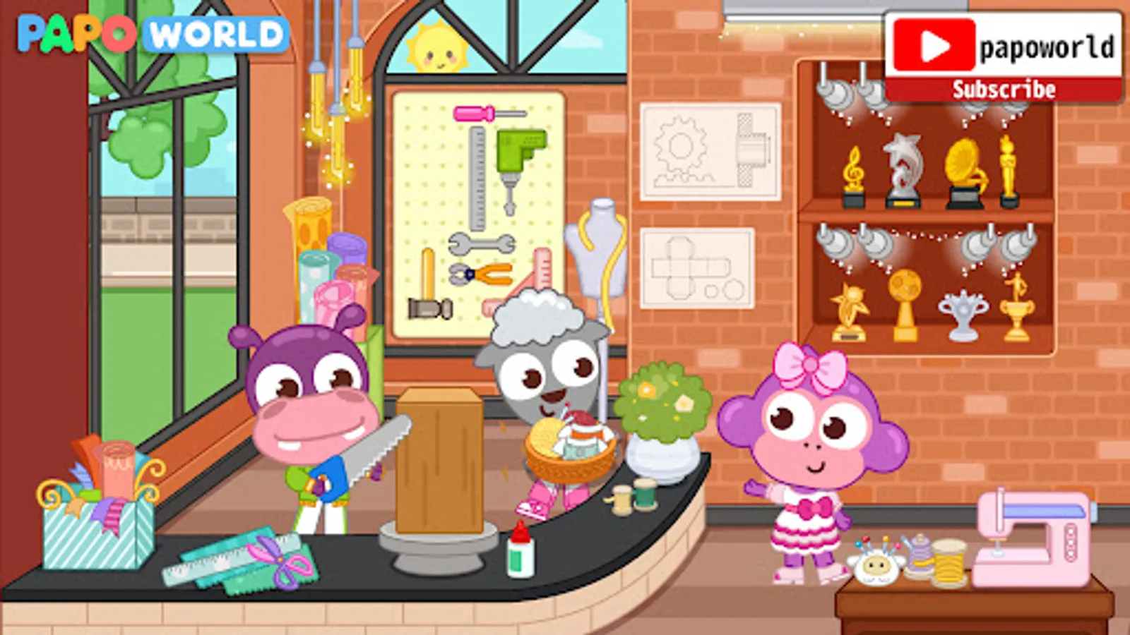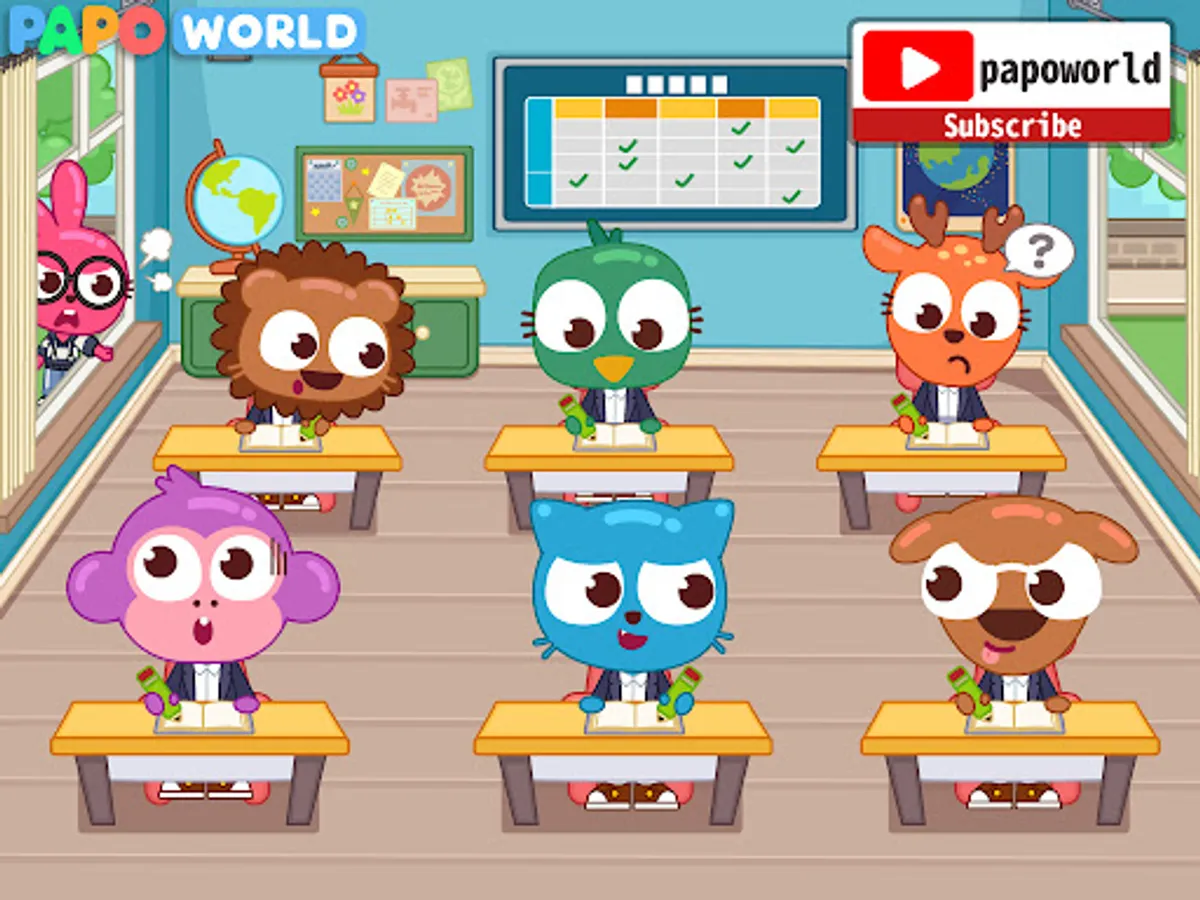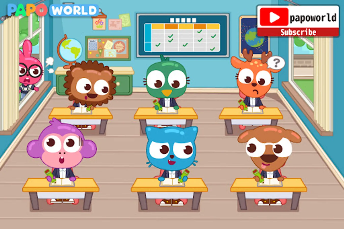 Papo Town School Life simulates the real school scenes and activities! There are so many props you could play and interact with, like the slides, swings and ball games in playground, the test tubes and plants in lab room, the music instruments like drum, piano, violin and guitar in the music room and lots more items to use! Each room has a fun mini game like pizza maker and music test, challenge yourself for higher score!