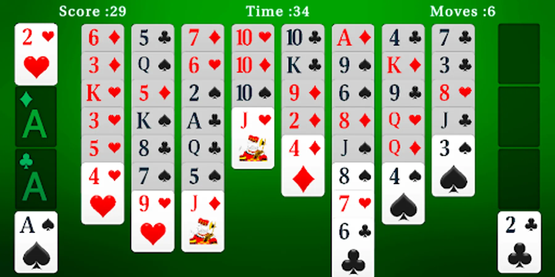 Drag and Drop Cards to their destination or if you are lazy you can tap to move cards automatically.