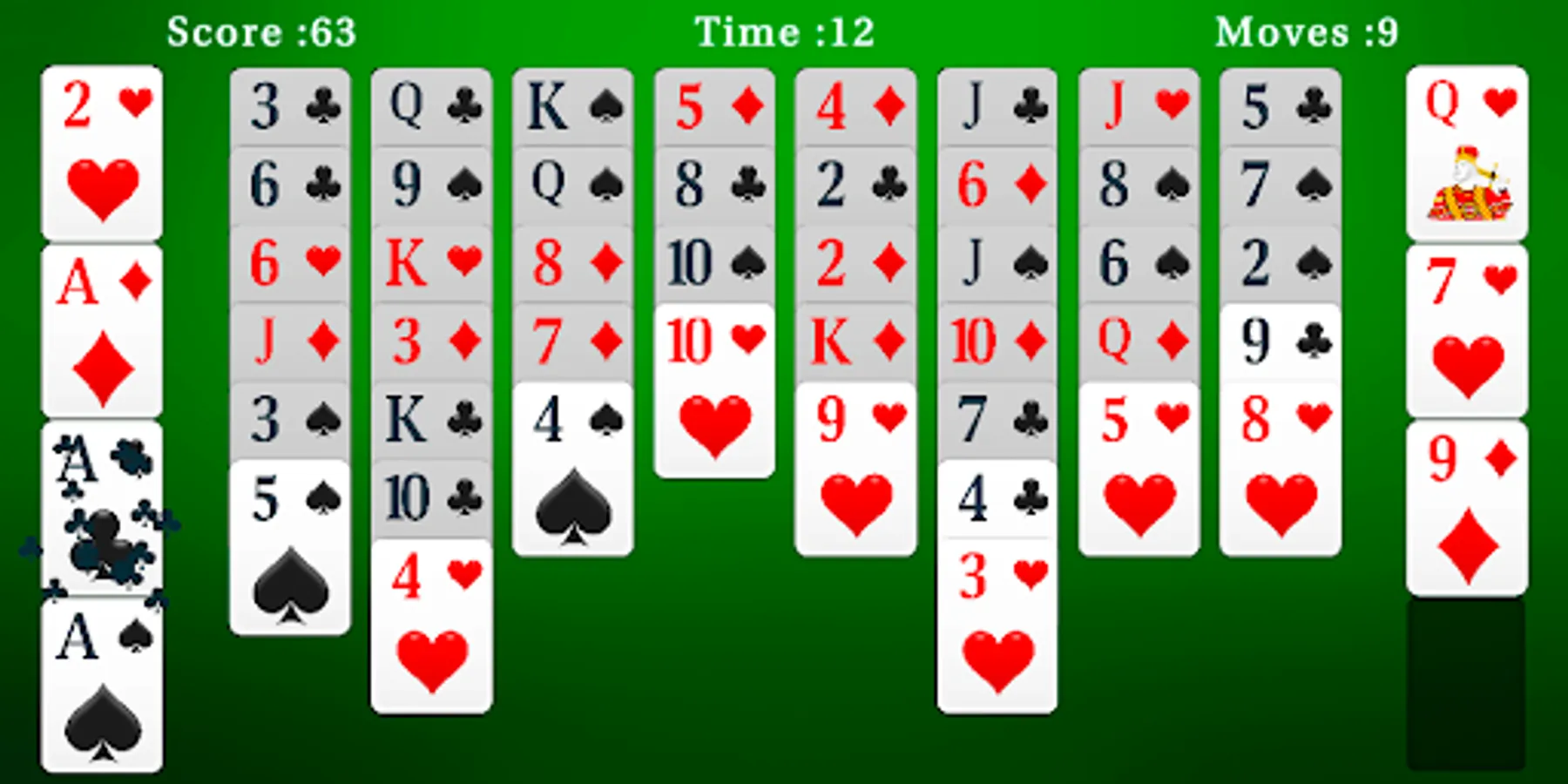 The main goal of the game is to build the 4 foundations on the right, from Ace to King.