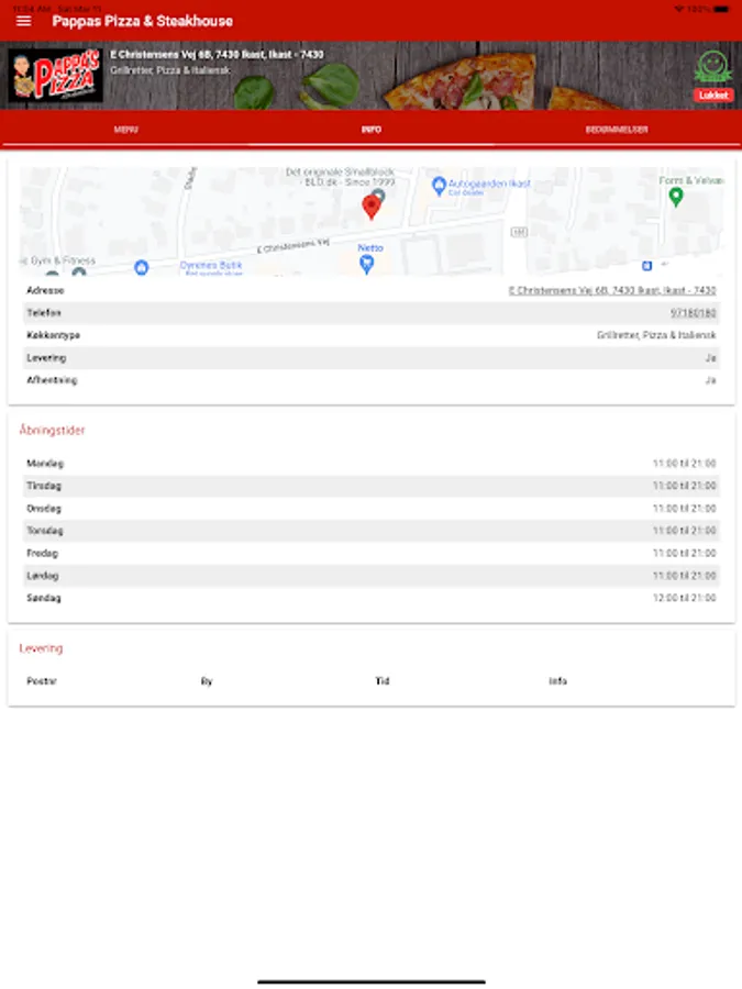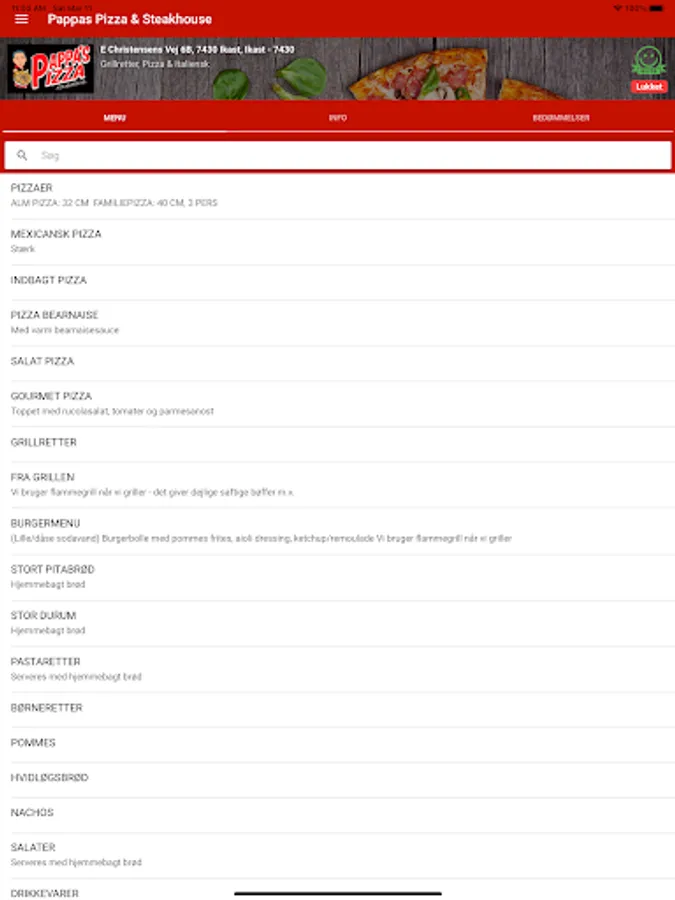 Bestil pizza, burger, pasta, m.m. med få tryk, nemt og hurtigt!
