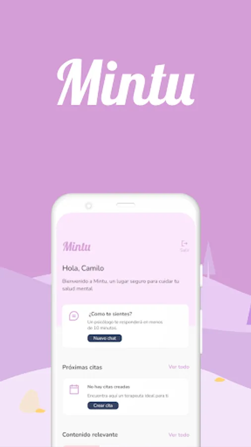 Mintu is a mental health app where you will find a team of professionals focused on helping you find peace of mind every day.