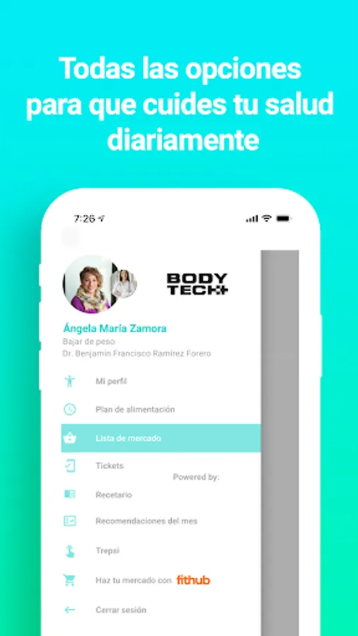 - General market list with products recommended by your nutritionist, with graphic references and places where you can get each product.