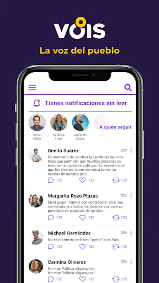 Our app is free of charge and signing up for it is very easy. Once you are part of this platform and as a member of our community, you will be able to open opinion topics with the possibility of uploading photos, videos and content of interest, you will be able to follow other leaders like you, interact with your community of followers and be part of the followers of other users. Likewise, listen and share topics of interest and give your opinion about them, a comment can replicate it, give a like and respond to it.