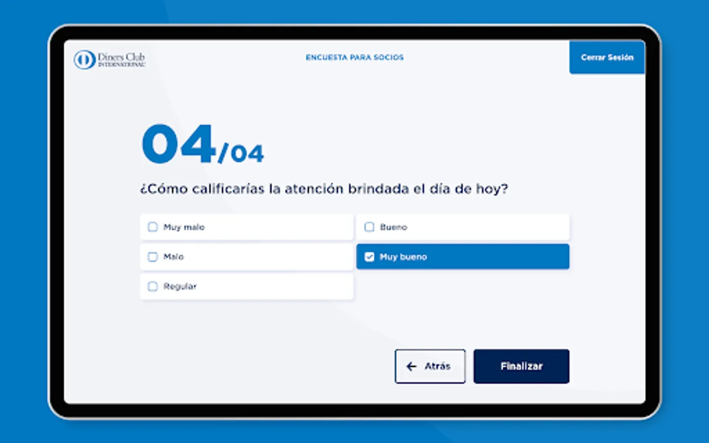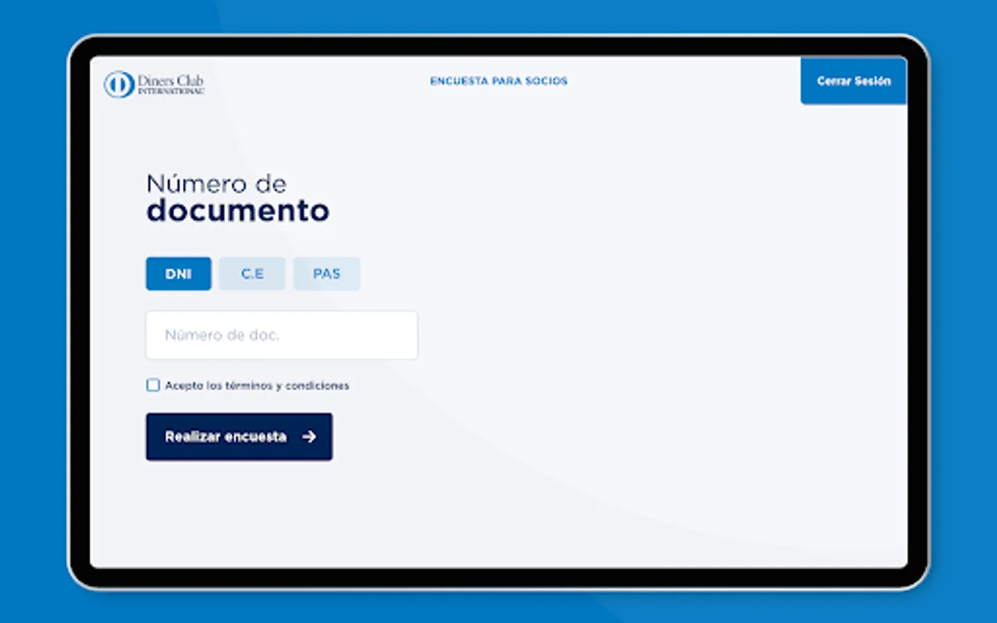 Polls DCP is an application for Diners Club Peru collaborators to collect feedback from Diners Club Members.