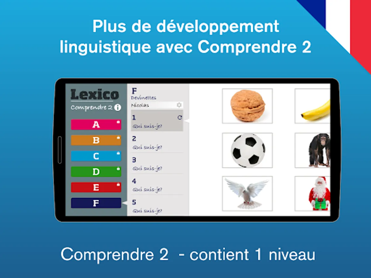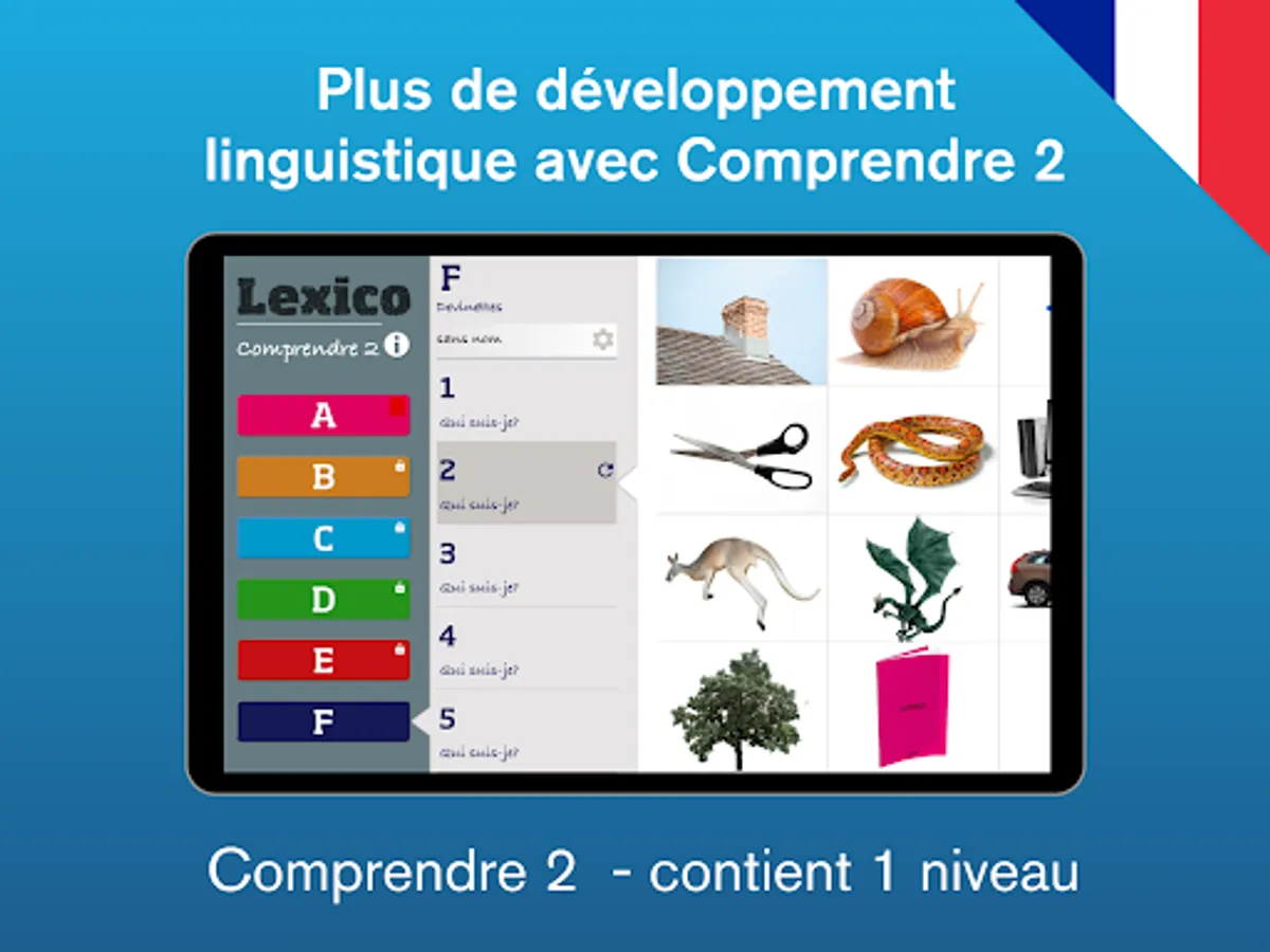 Lexico Comprendre 2 contains level "F". All other levels are activated by purchasing from the App-store.
