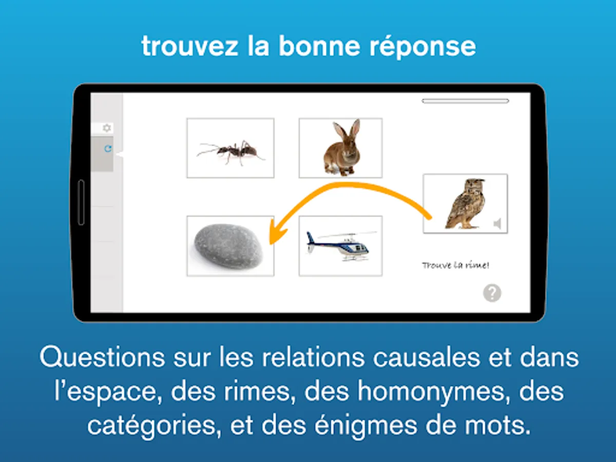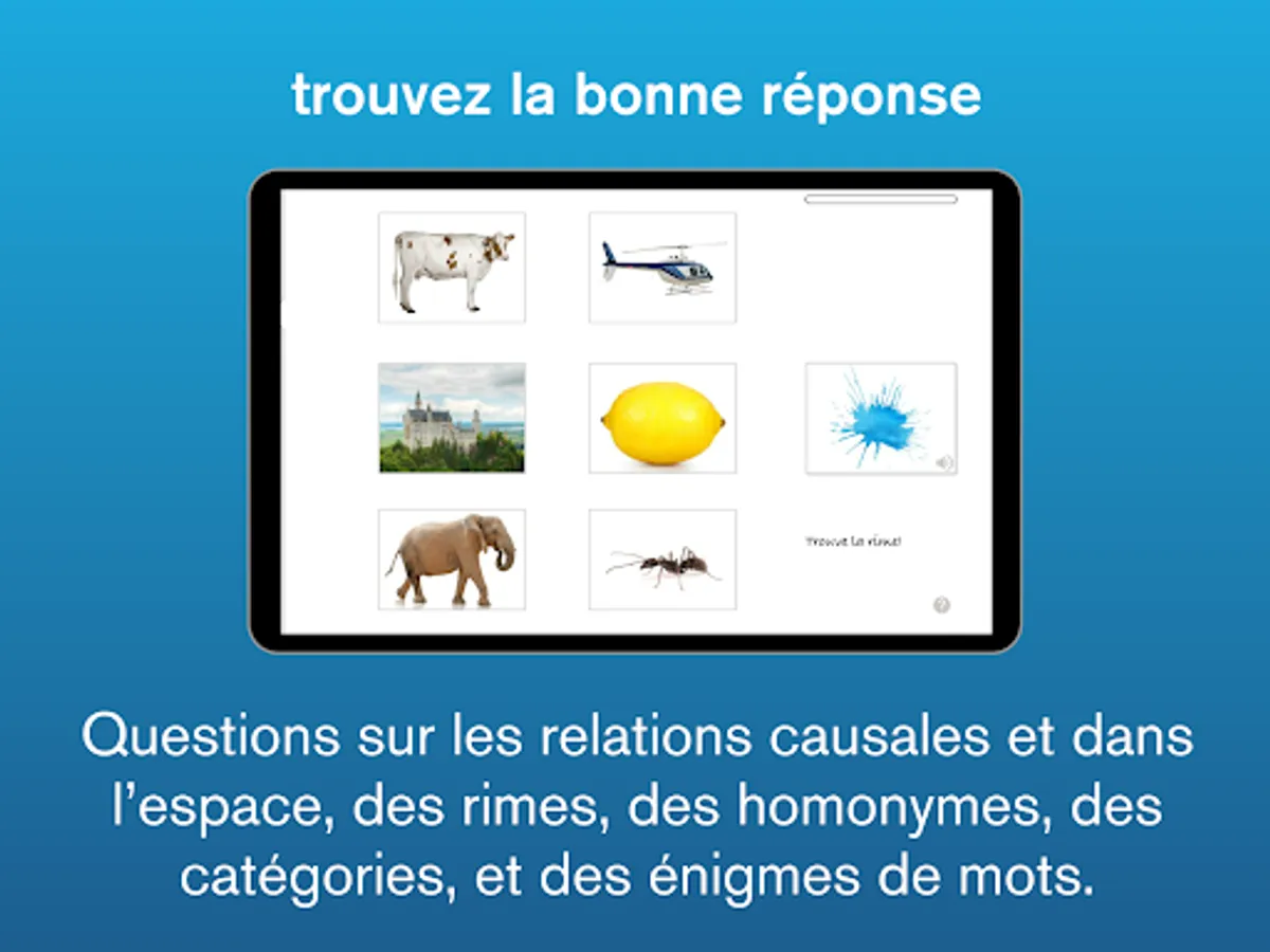 For the treatment of speech after a stroke or head trauma, Lexico Comprendre offers a new approach to understanding concepts and vocabulary. Patients (accompanied or alone) can work with a tool engaging in the rehabilitation of their language skills.