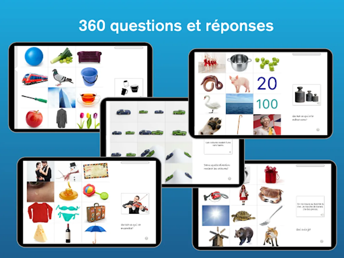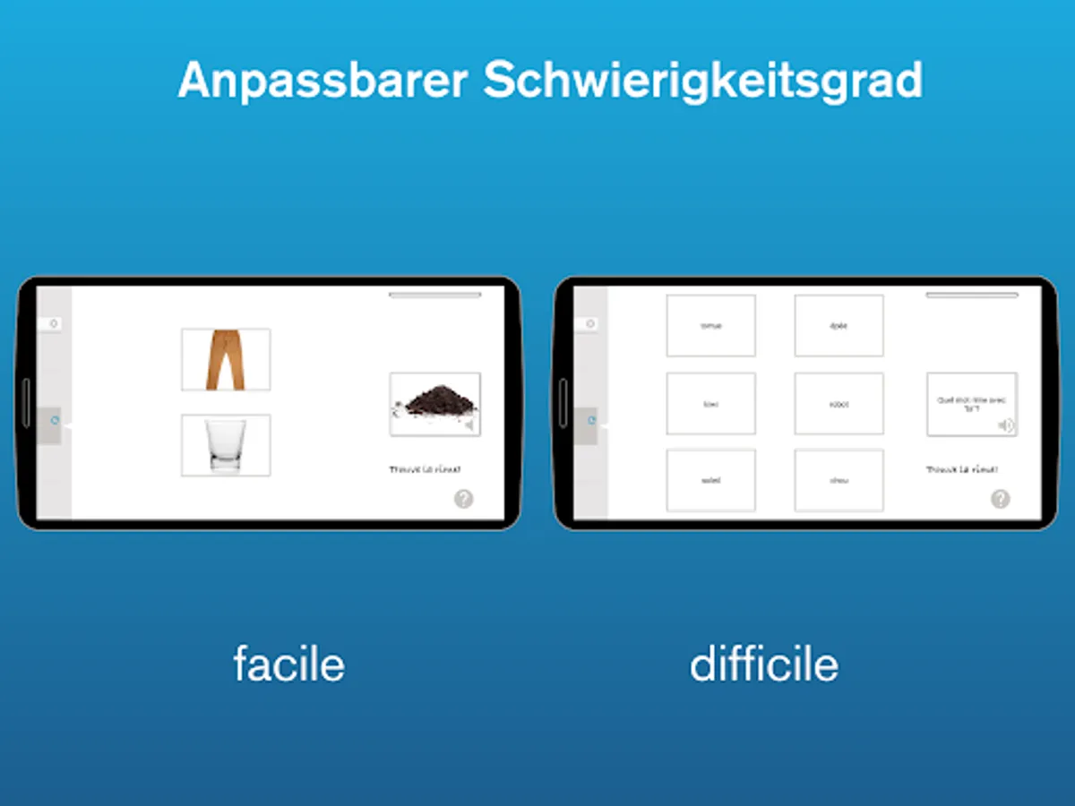 This application develops, through play, language in children and adults. The essential elements are the promotion of comprehension, and the memorization of the written and vocalized words.