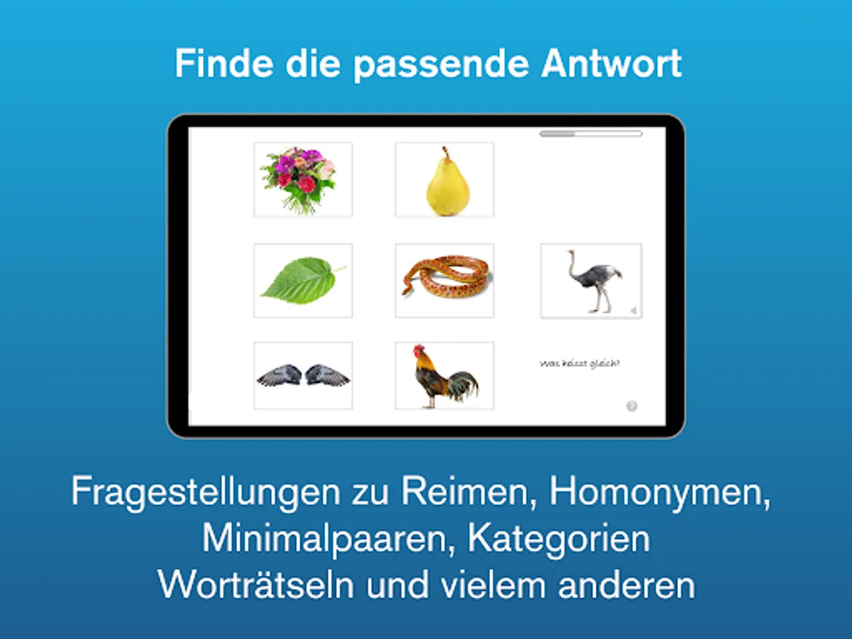 Lexico Understanding 1 is also available in the Play Store with additional question and answer games for speech therapy.