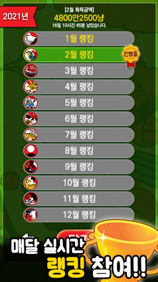 Also, depending on my level, the game is played under various conditions. The higher the level, the more games are available, so you can enjoy GoStop for a long time.
