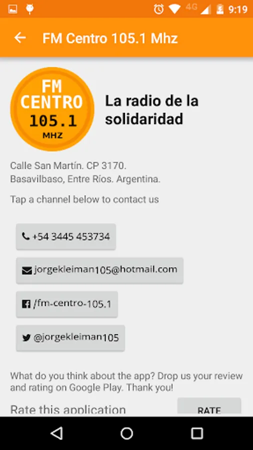 Radio Centro 105.1 transmitiendo en frecuencia modulada, la gran radio de Basso y por su parte nuestro Canal 7 que apoya permanentemente con su emisión de imágenes.