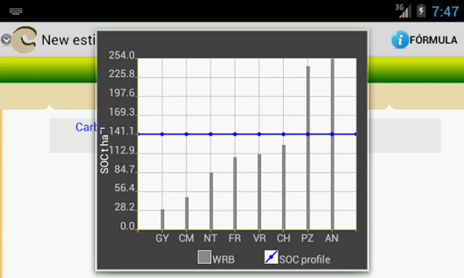 With COS + it is possible to make the calculations of the organic carbon in a quick and easy way. It is also possible to make estimates of the amount of organic carbon using the description of the soil profile in the field (contains aid for the estimation of the apparent density, stoniness and organic carbon in field).