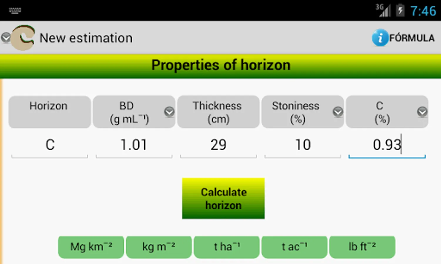 Mexican engineers (company Skiu -Scientific Knowledge In Use, (http://www.actswithscience.com/apps/) have created a Smartphone App for calculate quickly and easily soil organic carbon in horizon and profile.