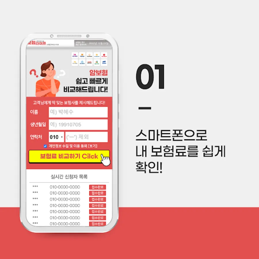 You can search cancer insurance premiums by major domestic insurance companies in 1 minute on mobile. You can find out which cancer insurance is right for you by providing recommended cancer insurance products in the Insurance Life Cancer Insurance APP. You can easily find out and sign up for cancer insurance with the Insurance Life Cancer Insurance APP without having to look everywhere for cancer insurance with affordable insurance premiums and strong guarantees.