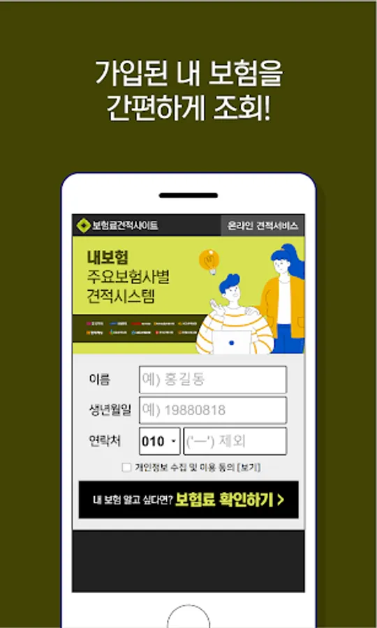 Our app does not require complicated authentication procedures. If you enter simple information, you can easily check your insurance inquiry. Find and check my hidden insurance! Real-time My Insurance Inquiry Premium Calculation My Insurance Consulting Guarantee Analysis app helps you to check your insurance easily and conveniently.