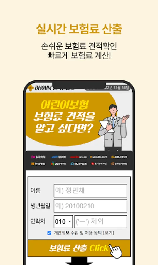There are many people who are wondering how to choose child insurance for their precious children more reasonably. In that case, what you need is a child insurance comparison app. After installing the app, you can view your child's insurance premium in real time after entering simple information, and compare insurance products by insurance company.