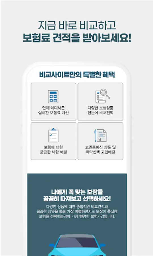 You can easily meet the car insurance that can be designed from the desired stage anytime, anywhere in the desired way in the mobile Hyundai Marine & Fire Insurance auto insurance comparison app. Even when you are on the go, you can easily sign up on your mobile without any problems. We will help you to live a more secure driving life by choosing an auto insurance that provides you with a reliable guarantee and accident protection service without having to worry because it is a low premium.