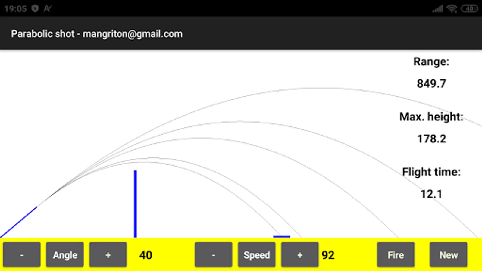 Simple application to understand the basics of the parabolic shot (initial speed, angle, range, time of flight, etc.)