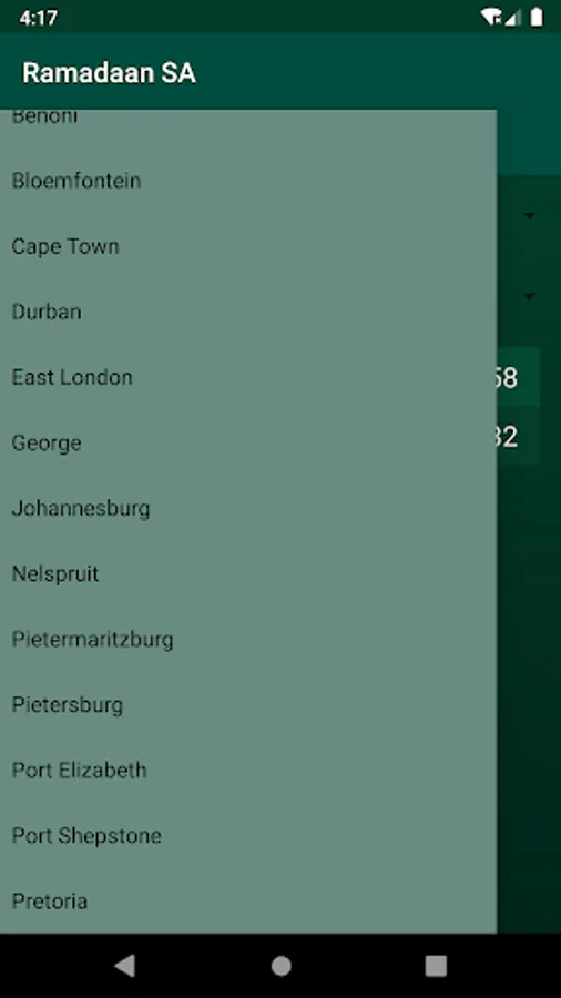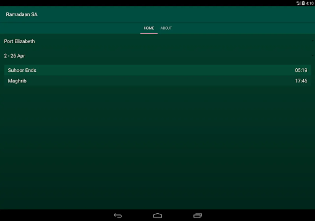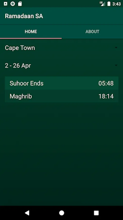 Ramadaan times for South Africa, multiple cities. Works offline, no data, no adverts.