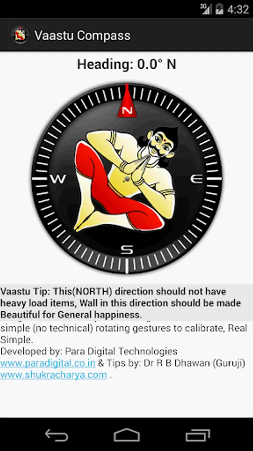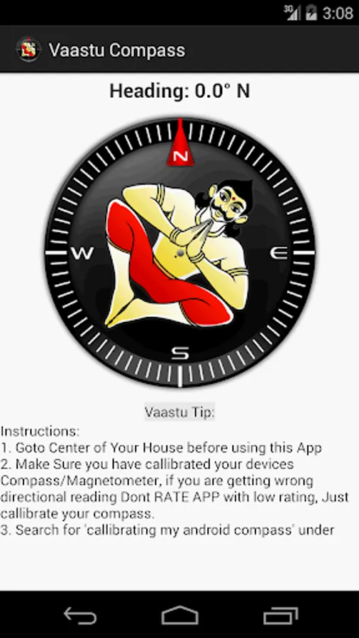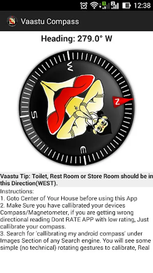 This app is Basically a Compass with Vaastu Shastra Compliant Tips for you to use in your Daily Life. Vaastu Tips are the Major Feature of this app, and are indicated as you rotate and point to any perticular direction while standing in middle/center of your House.